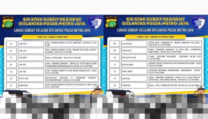Jakarta – Untuk memberikan kemudahan dalam pengurusan administrasi kendaraan, Subdit Registrasi dan Identifikasi (Regident) Direktorat Lalu Lintas Polda Metro Jaya meluncurkan layanan Samsat Keliling yang beroperasi di 14 wilayah Jakarta, Depok, Tangerang, dan Bekasi (Jadetabek) pada hari Senin, 27 April. Dengan adanya layanan ini, masyarakat di kawasan Jadetabek dapat lebih mudah mengakses berbagai layanan terkait kendaraan tanpa harus pergi ke kantor Samsat pusat.